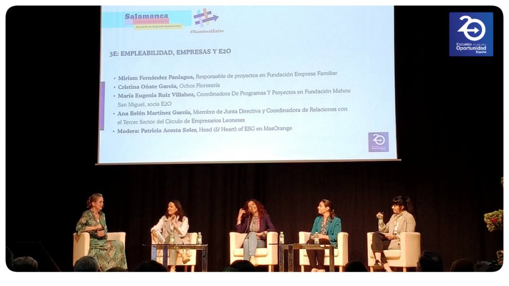 Los días 03 y 04 de junio la Fundación Canaria Main tuvo la oportunidad de participar en el IX Encuentro Nacional de Escuelas de Segunda Oportunidad celebrado en Salamanca dinamizado por los chicos/as de las diferentes escuelas. En este encuentro participaron representantes de diferentes administraciones públicas, entidades sociales y educativas, universidades y empresas. Fue un encuentro dinámico y enriquecedor que nos permitió escuchar de primera mano toda la labor que se está desarrollando a nivel nacional promoviendo un modelo que restaura la confianza de los jóvenes en el futuro. Hablamos de alrededor de 8700 jóvenes formándose en las diferentes escuelas acreditadas en las E2O con una tasa de éxito por inserción laboral y retorno educativo del 67%.