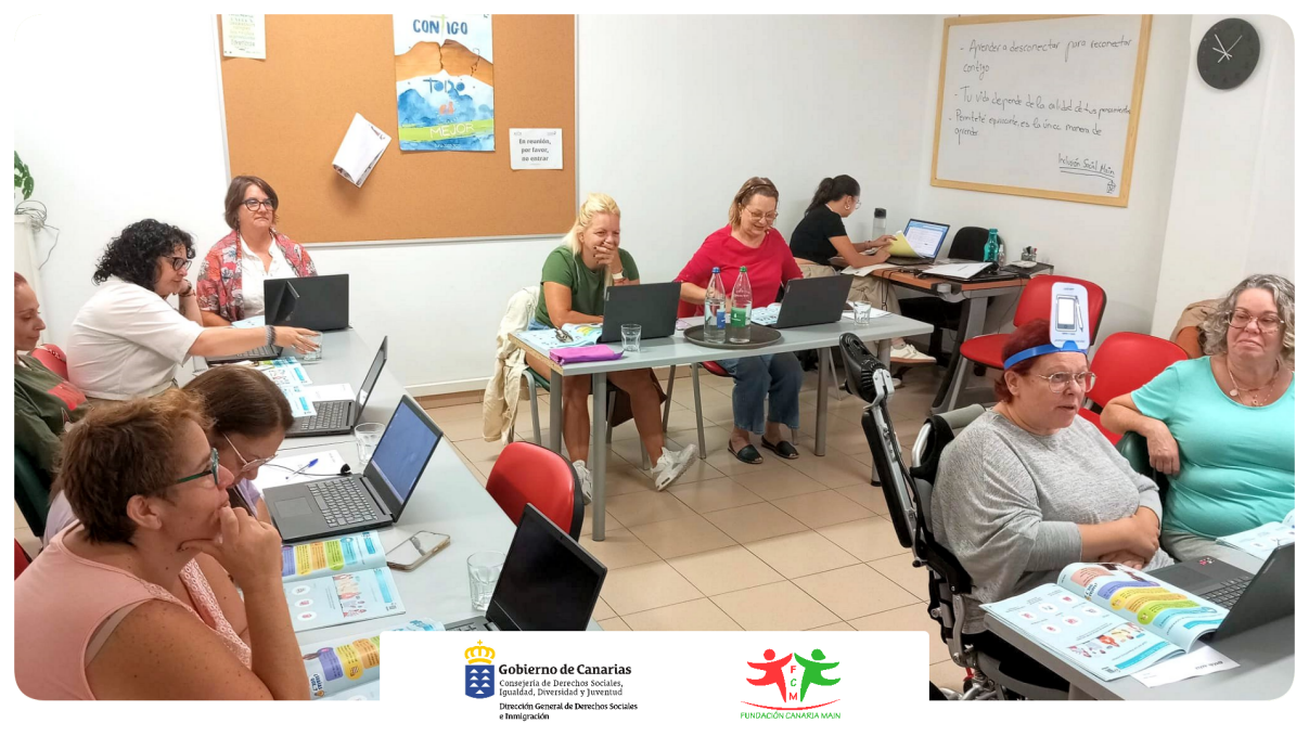 Uno de los objetivos primordiales del Proyecto Inclusión Social Main es proporcionar una atención personalizada que garantice un proceso integral y satisfactorio para cada uno de nuestros/as beneficiarios/as. Este proceso comienza con una acogida formal, en la cual se lleva a cabo la firma de documentos relacionados con la protección de datos, elaboración de la entrevista inicial para conocer las demandas existentes y el establecimiento de objetivos alcanzables y medibles, realizándose una evaluación cuatrimestral de los alcances obtenidos. Es necesario esta atención individual para poder alcanzar metas realistas, como es el haber forjado un grupo de mujeres interesadas en realizar, a través de la inestimable colaboración por parte del personal docente de ECCA.EDU, una formación sobre Ciudadanía Digital con una duración de 30 horas, donde acuden semanalmente a recibir la formación por parte de la docente.