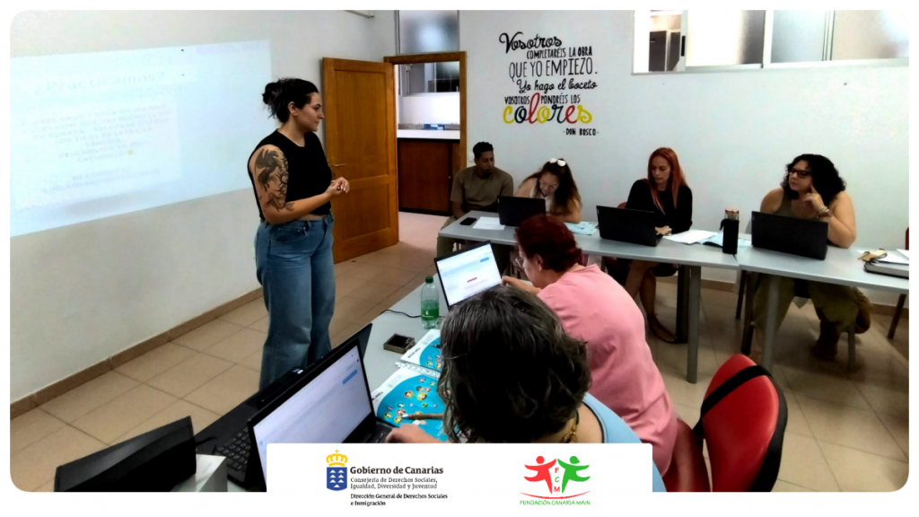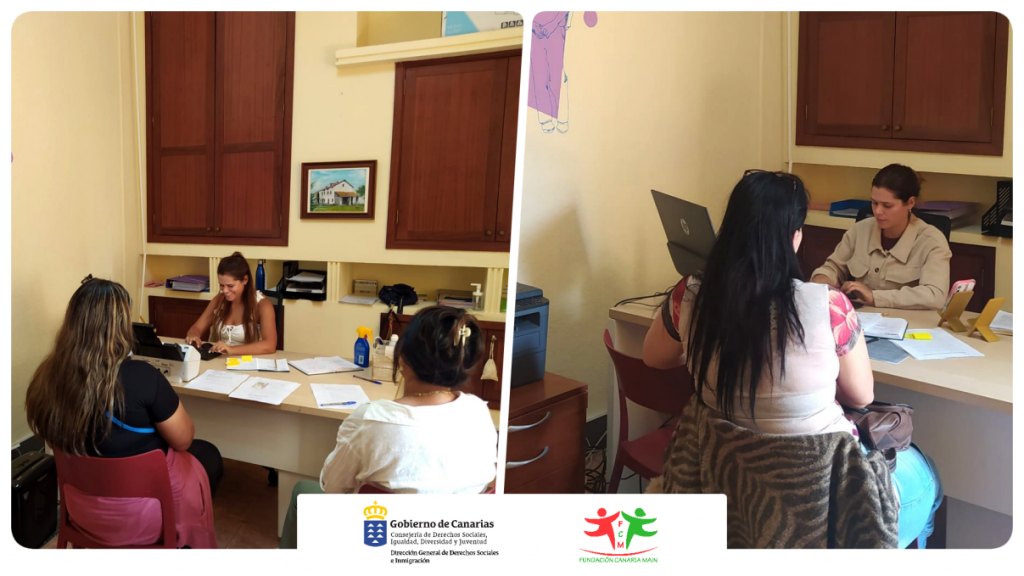 Uno de los objetivos primordiales del Proyecto Inclusión Social Main es proporcionar una atención personalizada que garantice un proceso integral y satisfactorio para cada uno de nuestros/as beneficiarios/as. Este proceso comienza con una acogida formal, en la cual se lleva a cabo la firma de documentos relacionados con la protección de datos, elaboración de la entrevista inicial para conocer las demandas existentes y el establecimiento de objetivos alcanzables y medibles, realizándose una evaluación cuatrimestral de los alcances obtenidos. Es necesario esta atención individual para poder alcanzar metas realistas, como es el haber forjado un grupo de mujeres interesadas en realizar, a través de la inestimable colaboración por parte del personal docente de ECCA.EDU, una formación sobre Ciudadanía Digital con una duración de 30 horas, donde acuden semanalmente a recibir la formación por parte de la docente.