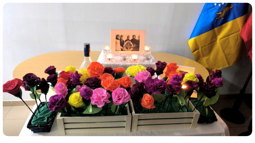 Posteriormente, realizamos un emotivo acto en recuerdo de nuestros seres queridos que ya no están, dejando las flores como símbolo de memoria y ofrenda.