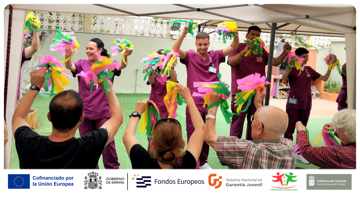 Durante la visita, el alumnado-trabajador tuvo la oportunidad de interactuar directamente con los usuarios y usuarias del centro, desarrollando una actividad lúdico-recreativa con temática veraniega. La jornada estuvo centrada en dinamizar un espacio de convivencia a través de música y baile relacionada con el verano, fomentando así el bienestar emocional y la participación activa de los mayores.