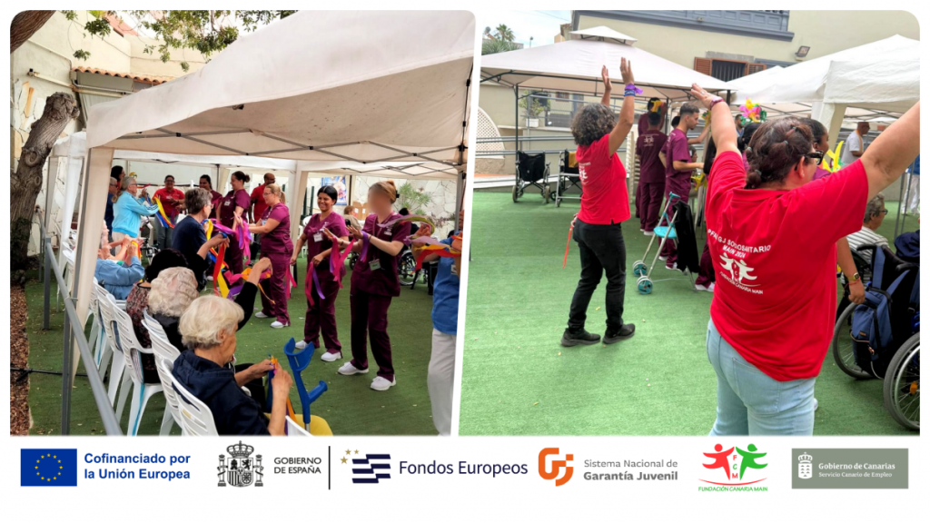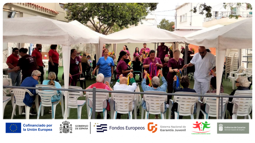 Durante la visita, el alumnado-trabajador tuvo la oportunidad de interactuar directamente con los usuarios y usuarias del centro, desarrollando una actividad lúdico-recreativa con temática veraniega. La jornada estuvo centrada en dinamizar un espacio de convivencia a través de música y baile relacionada con el verano, fomentando así el bienestar emocional y la participación activa de los mayores.