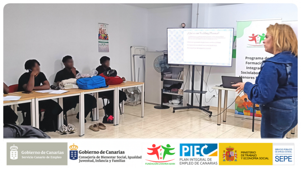 Tuvimos la visita de Vanessa de la Nuez Peñate (Wedding and Event Planner) a los alumnos del curso de Bar y Cafetería del Programa de Formación e Integración Sociolaboral para Menores Migrantes en la Fundación Canaria Main. Más que una simple charla informativa, esta visita fue para nuestros jóvenes una inmersión en el mundo laboral, una ventana al futuro profesional que les espera.